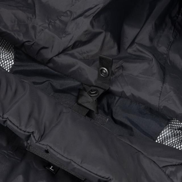 インナージャケットとアウターはフロント内部のファスナーと袖口、首元のスナップボタンで連結して着用することも、それぞれを単体で使用することもできます。アウターは防水透湿性を持つ2層構造のナイロン素材を採用。インナーはしなやかなナイロンタフタ。軽量でかさ高がある、独自開発の中わた・HEATSEEKERで保温性を高めています。アウターのフードはワンハンドアジャスター対応です。