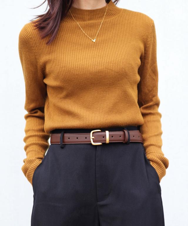 オンオフ兼用でキレイめにもカジュアルにも合わせやすい可愛いレザーベルトです。