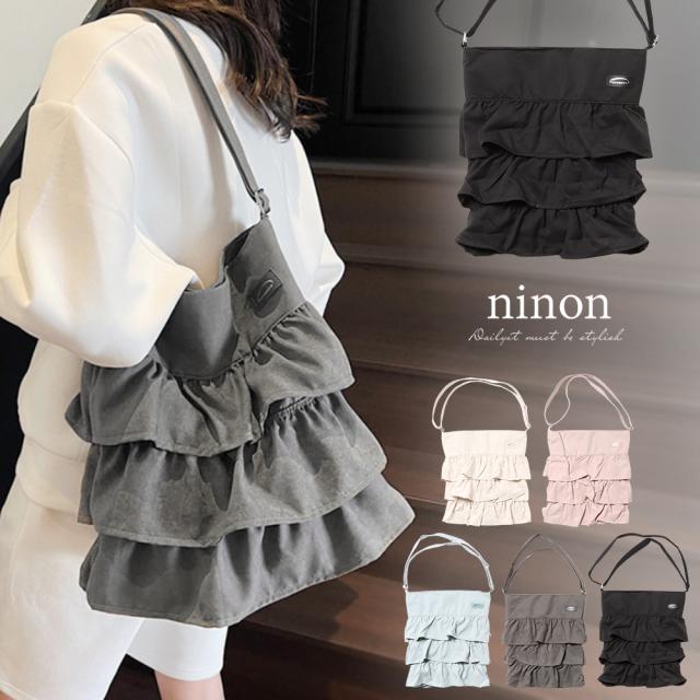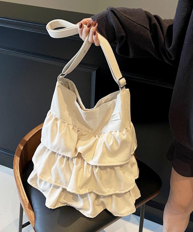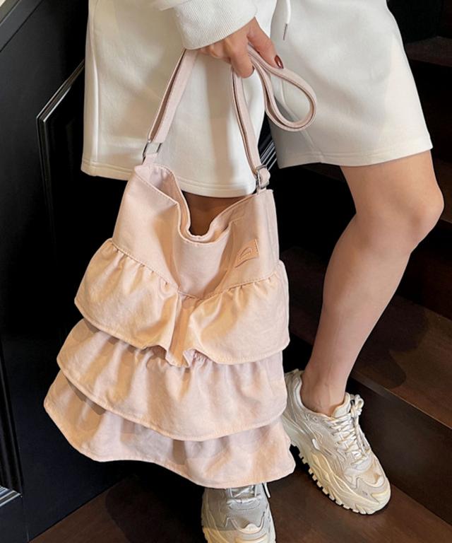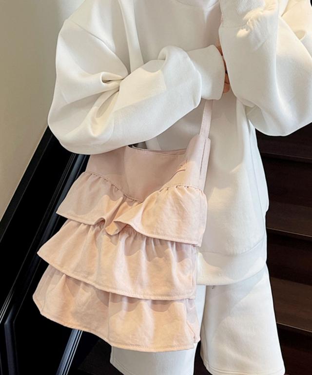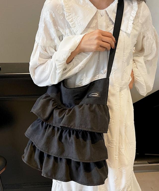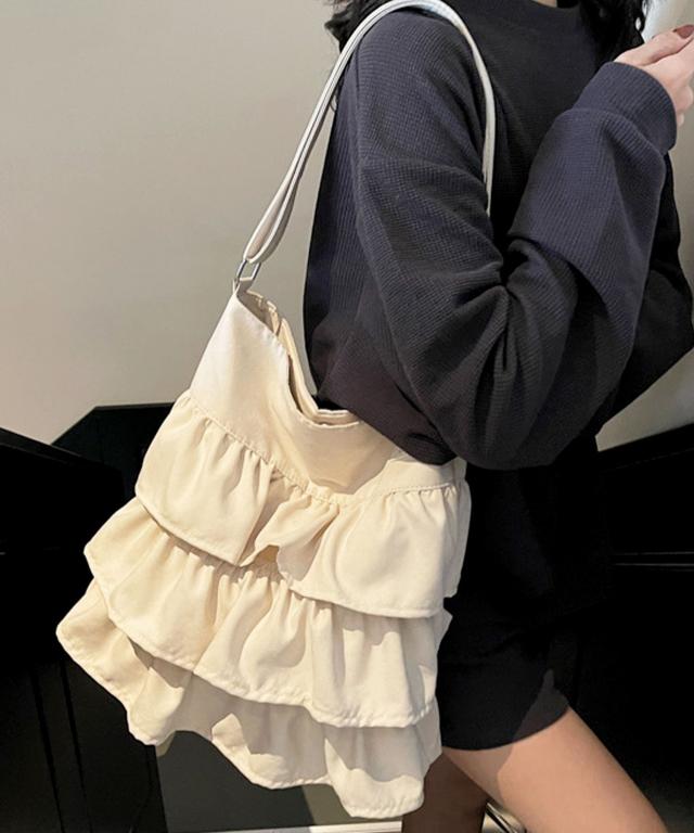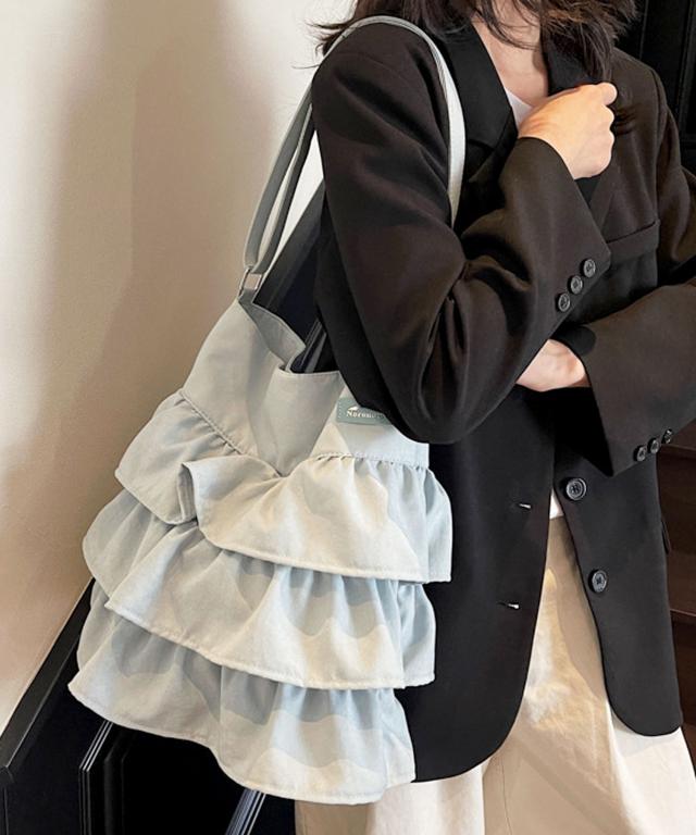 【3段ラッフルフリルが大人かわいいデザインショルダーバッグ/トートバッグ/サブバッグ】