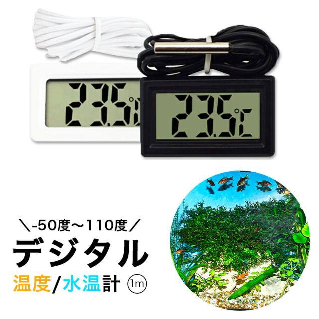 温度計 デジタル 水温計 デジタル 温 度 計 水槽 風呂 プール アクアリウム 水槽温度計 ケーブル式 壁 埋め込み可能 センサーコード長さ1m LCD 液晶表示 1M 1m おしゃれ 風呂 小型