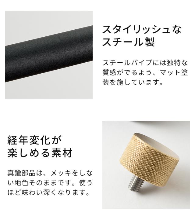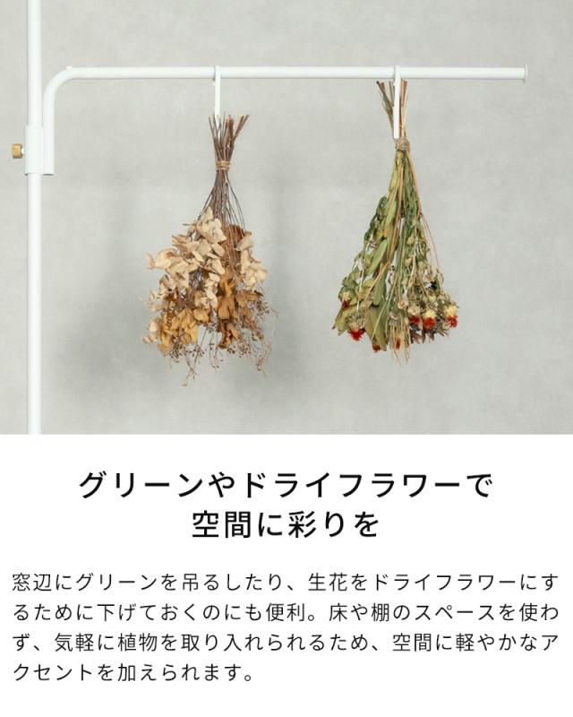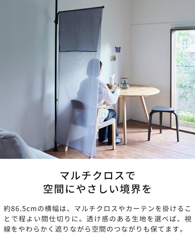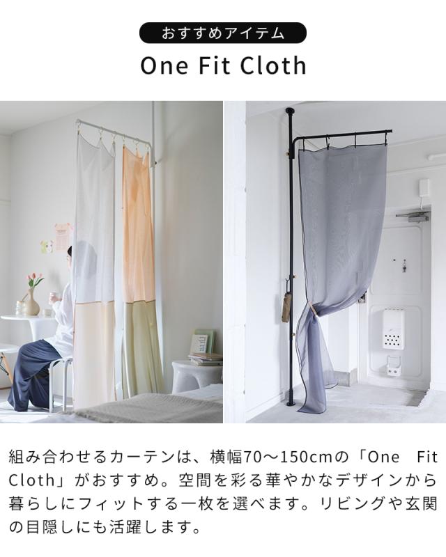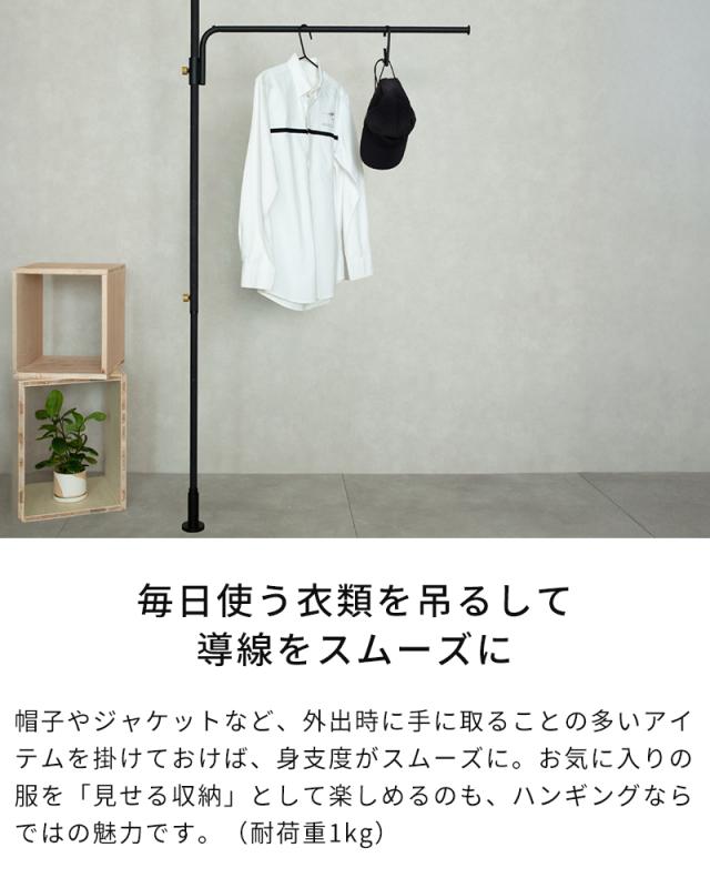 「DRAW A LINE(ドローアライン)」シリーズのTension Rod A/B/Proと組み合わせて、自由な場所にハンギングバーを設置できる縦取付専用アクセサリー「Cloth Arm」。約86.5cmの横幅は、マルチクロスを掛ければやさしい境界の間仕切りとして活躍し、視線を遮りながらも空間に抜け感を与えます。帽子やジャケットなど毎日使う衣類を吊るしてお出かけ時の導線を整えたり、グリーンやドライフラワーを飾って彩りを添えるのもおすすめ。暮らしに寄り添い、自由な使い方が広がります。