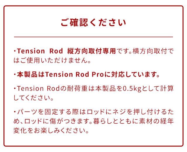 ・Tension Rodの耐荷重は本製品を0.5kgとして計算してください。