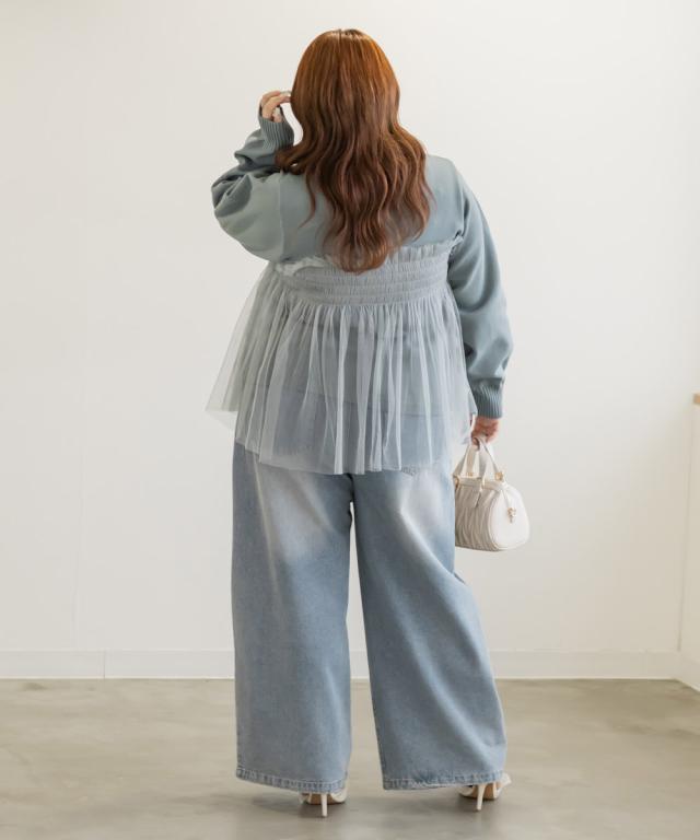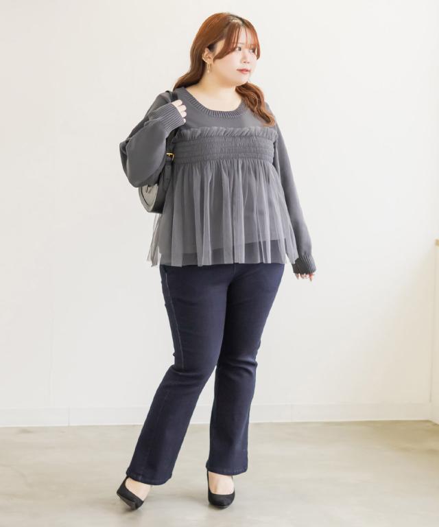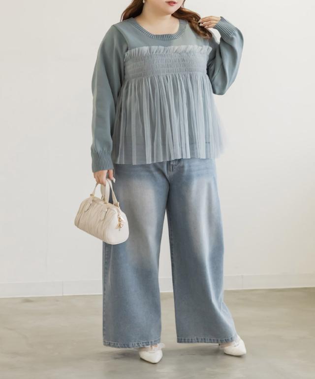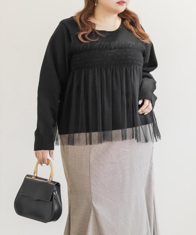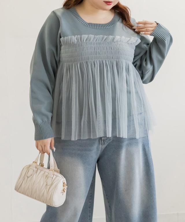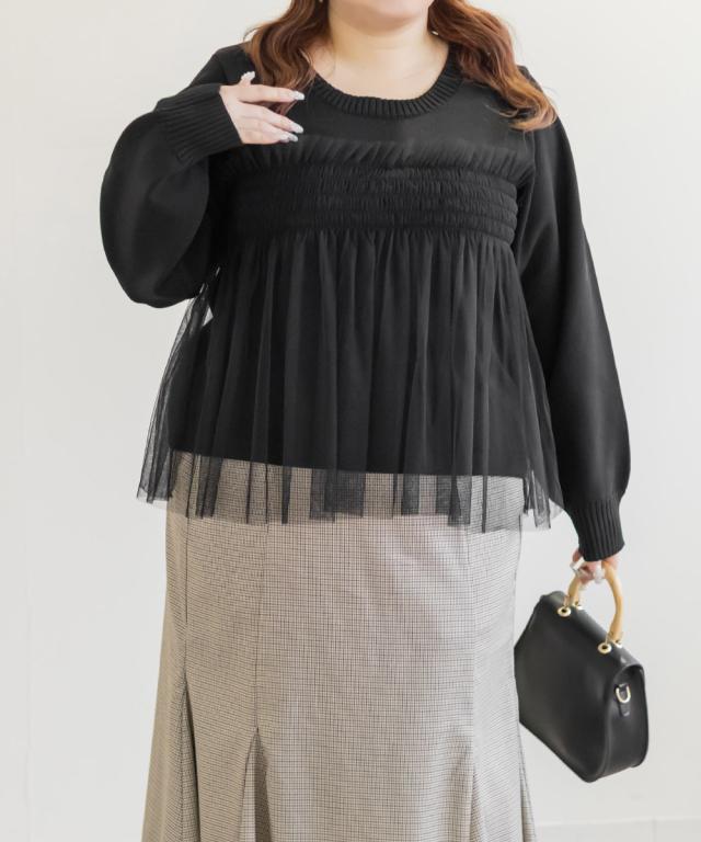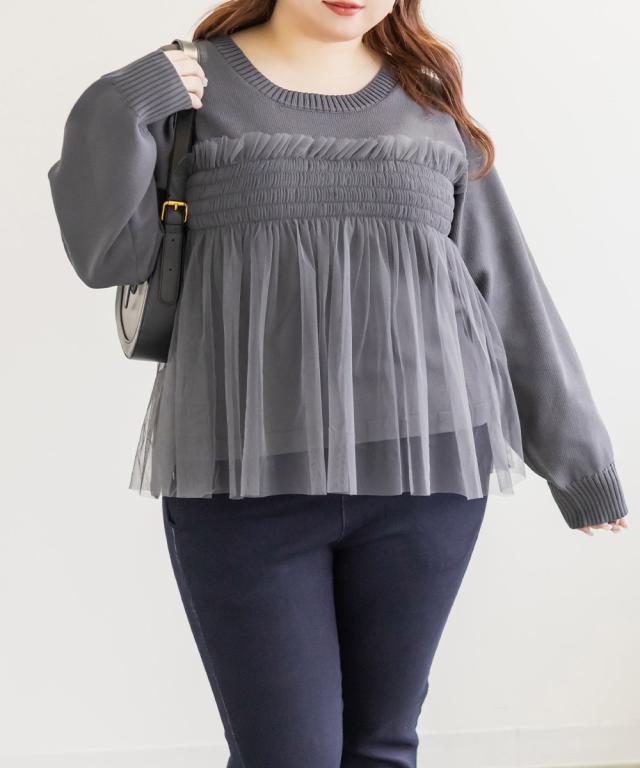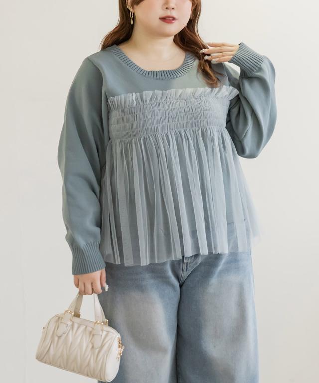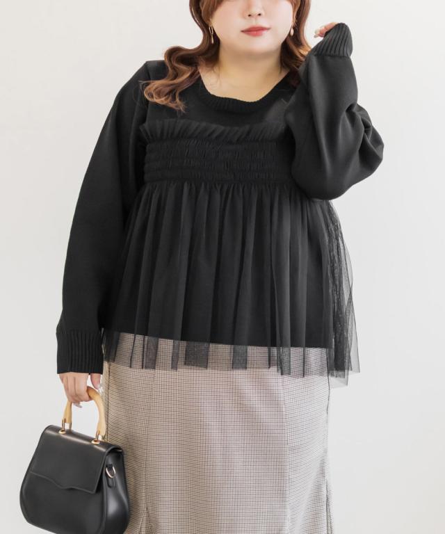 大きいサイズ/レディース/LL/3L/4L/CLETTEオリジナルシャーリングチュールドッキングニット