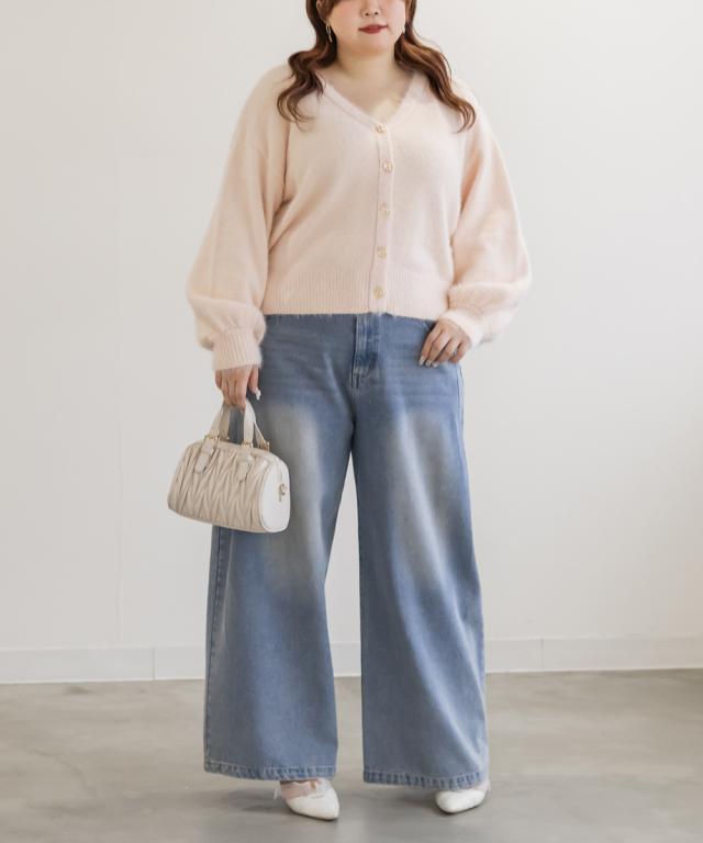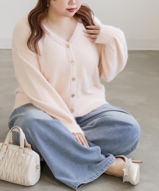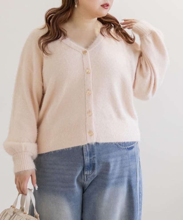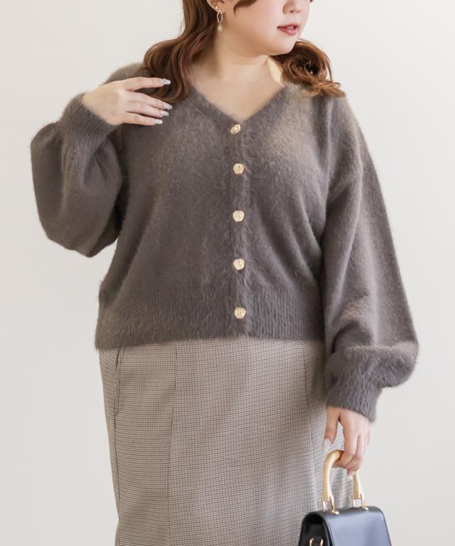 大きいサイズ/レディース/LL/3L/4L/CLETTEオリジナルゴールドボタンシャギーニットカーディガン