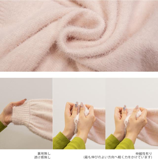 | 柔らかく伸縮性のあるシャギーニット素材。 |
