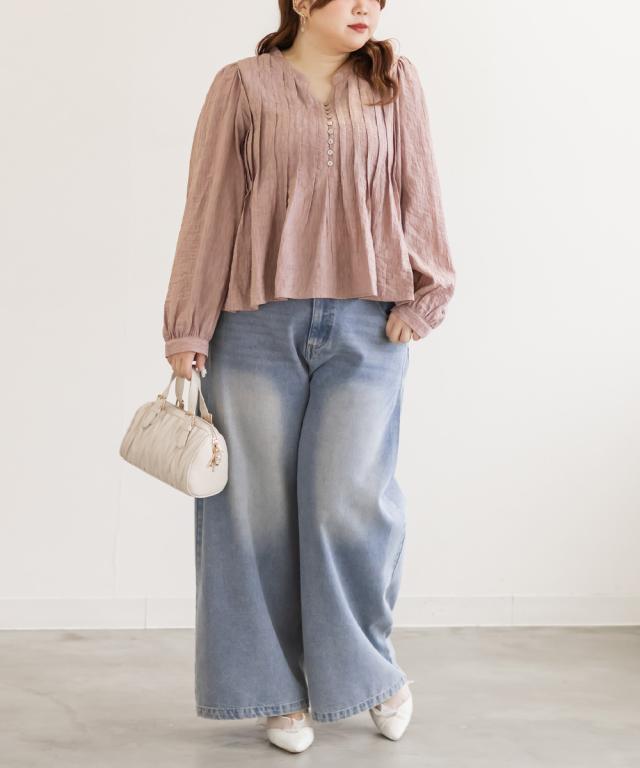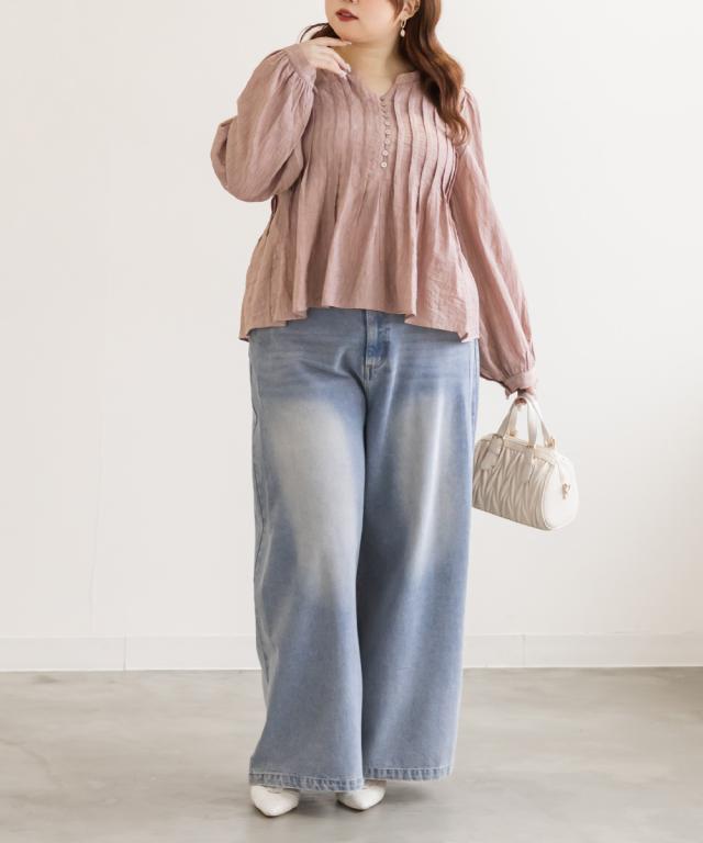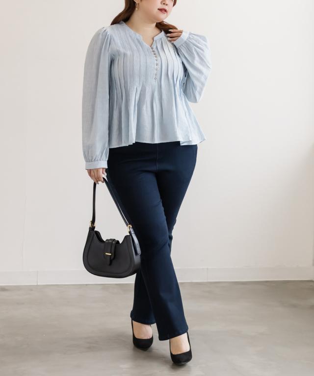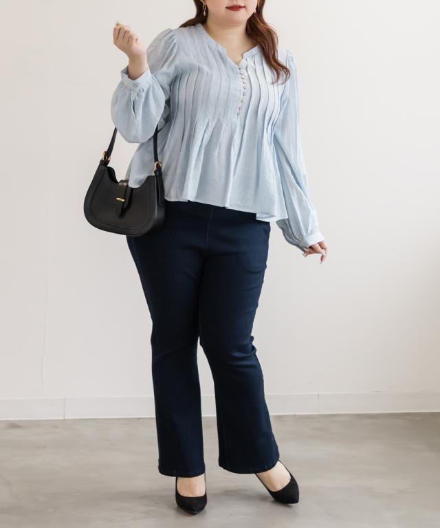 大きいサイズ/レディース/LL/3L/4L/CLETTEオリジナルピンタックフレアブラウス