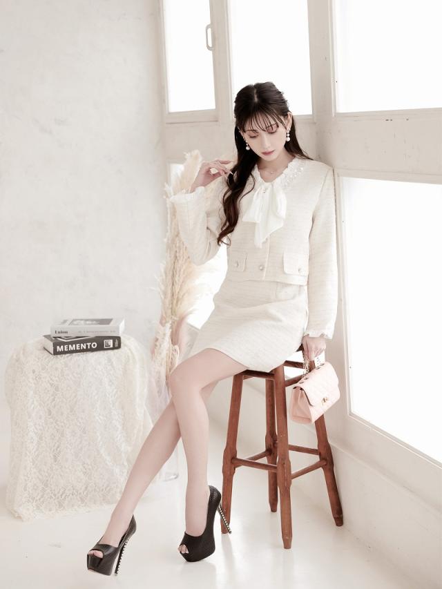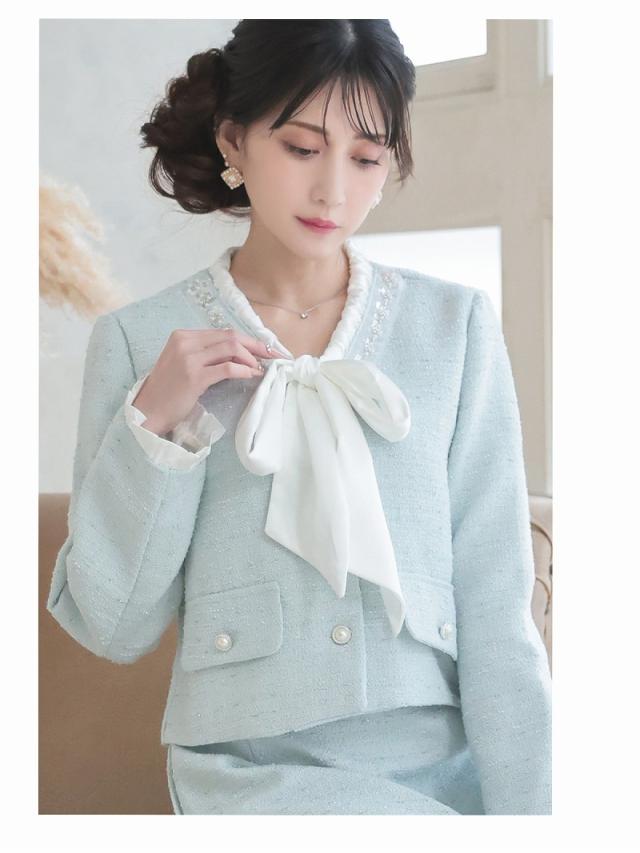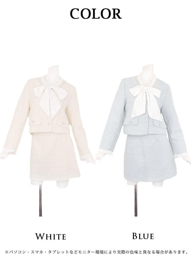一部予約販売 キャバスーツ Belsia ボウタイリボン ラメ入り ツイード フォーマル 式スーツ キャバ スーツ キャバスー