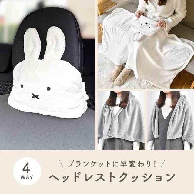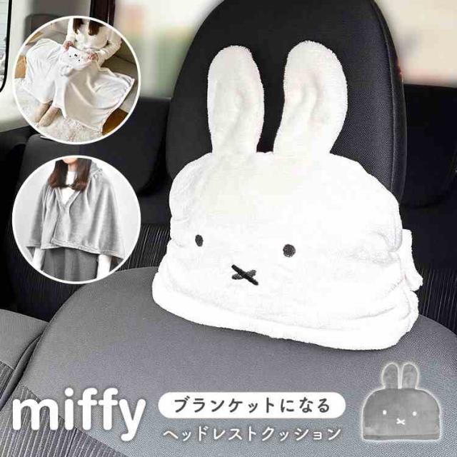 ヘッドレスト クッション ミッフィー miffy 車 ブランケット ひざ掛け 100 70 首 ネッククッション クッションになる 車用品 かわいい おしゃれ ニコット nicott 大判 ふわふわ 洗える 軽量 コンパクト 収納 キャラクター ブルーナ うさぎ フェイス 雑貨 ギフト プレゼント