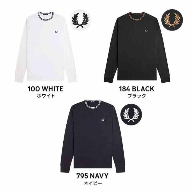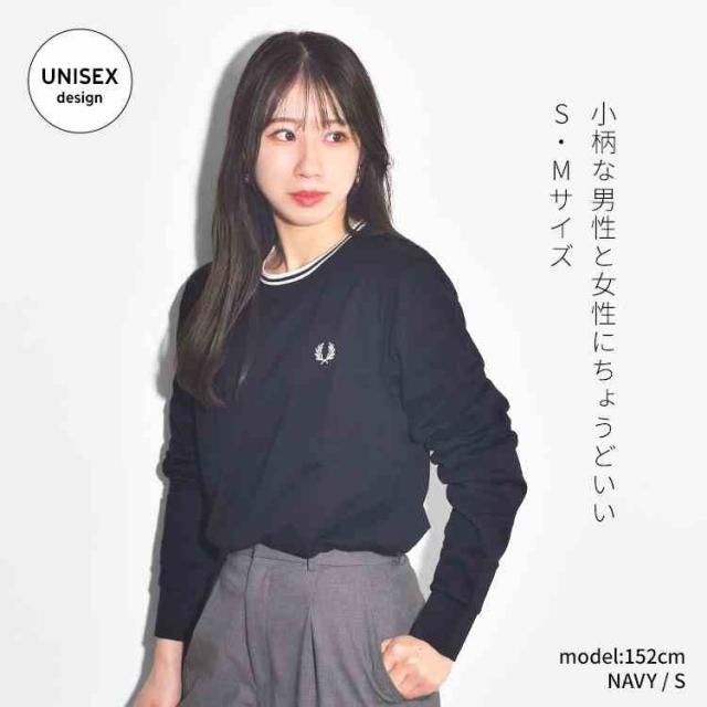 Fred Perry フレッドペリー ロンT ロングスリーブ Tシャツ M9602 Long Sleeve Twin Tipped T-Shirt 正規品 S M レディース メンズ トップス ワンポイント 長袖 カットソー ユニセックス ネイビー ブラック ホワイト シンプル おしゃれ 大人 クルーネック コットン 白 黒 紺