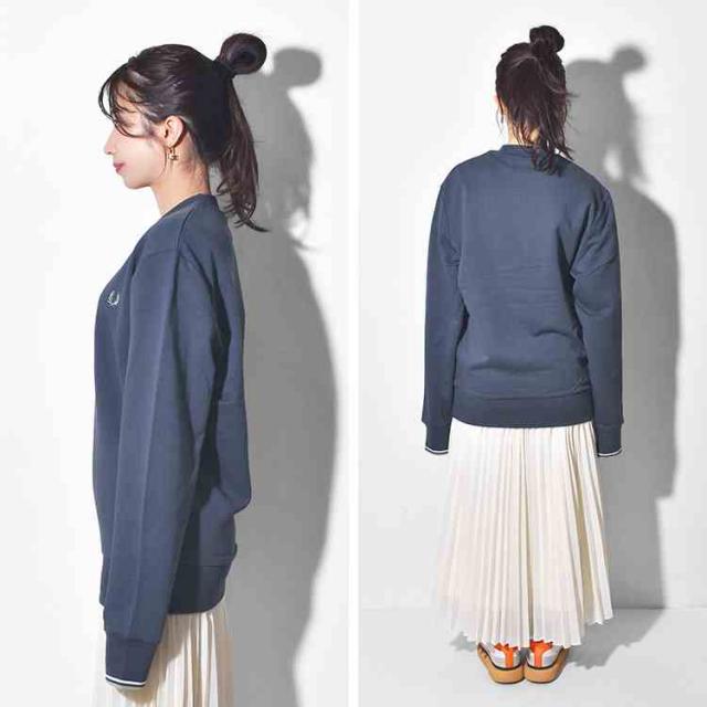 コットンのループバック素材を使用した、定番クルーネックスウェット。フレッドペリーシャツを思わせる袖口のティップラインがブランドらしい仕上がりです。クリーンできれいな表面感があり手触りがソフトな裏毛スウェット素材を使用しています。ユニセックスデザインなのでお揃いにもおすすめです。