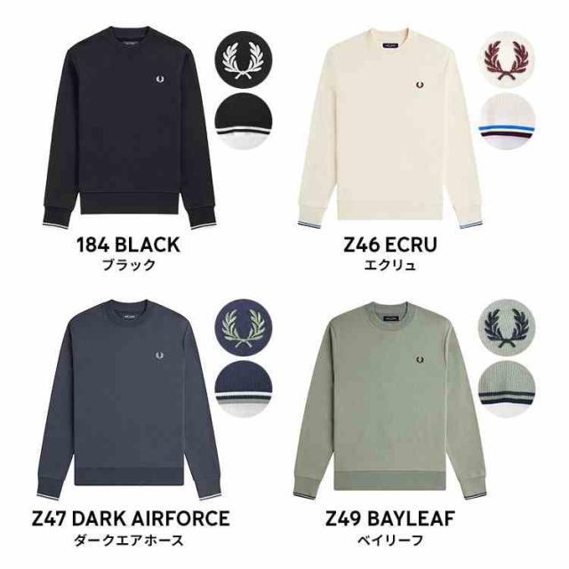 Fred Perry フレッドペリー スウェット トレーナー Crew Neck Sweatshirt M7535 正規品 S M 長袖 レディース メンズ ユニセックス トップス ワンポイント ロゴ 刺繍 ブラック アイボリー エクリュ ネイビー グリーン おしゃれ 大人 クルーネック 裏毛 丈夫 保温 シンプル