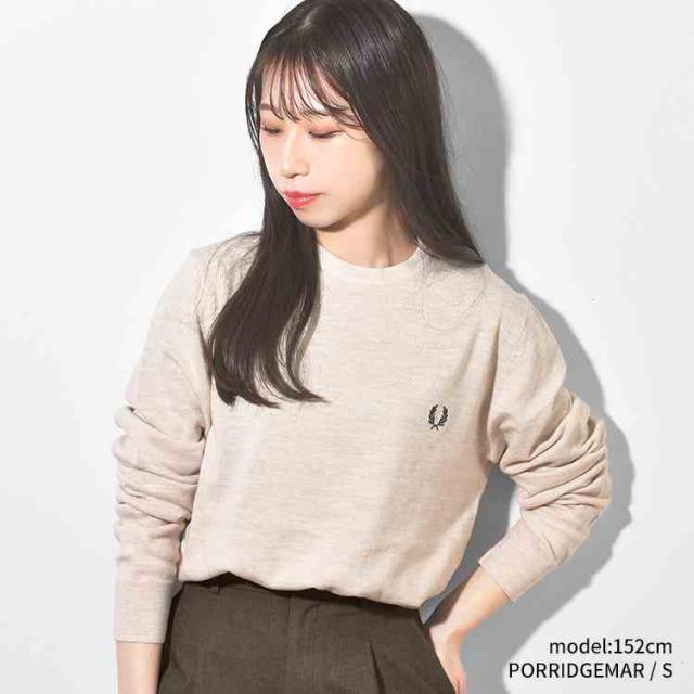 メリノウールとコットンのブレンド素材を使用した、クラシックなクルーネックニット。 ネックの内側にはティップラインをあしらい、フレッドペリーのブランドらしさを感じられるカラーリングでワンポイントの刺繍とベースの色味を仕上げています。ユニセックスデザインなのでお揃いにもおすすめです。