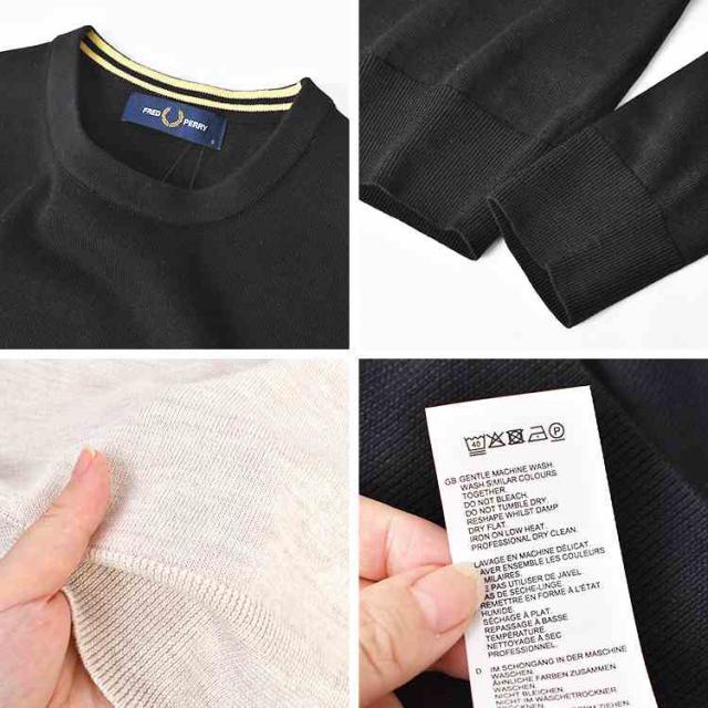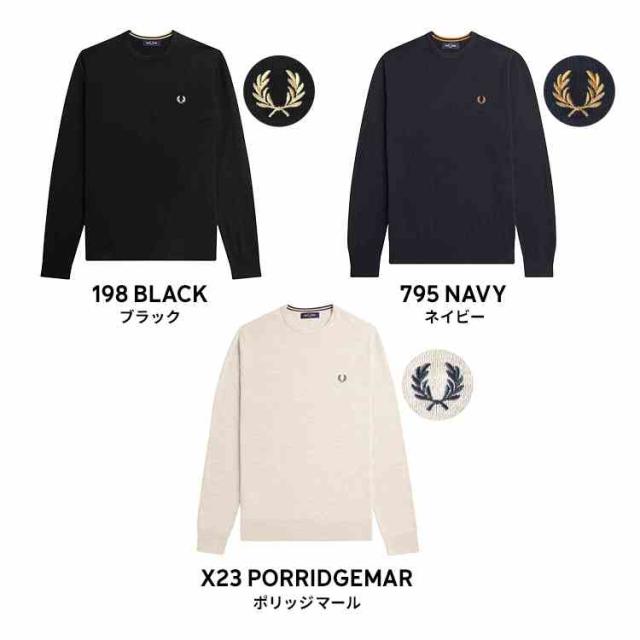 Fred Perry フレッドペリー ニット セーター Classic Crew Neck Jumper 正規品 K9601 メンズ レディース クルーネック 長袖 トップス S M ユニセックス ワンポイント ロゴ 刺繍 ブラック ネイビー ベージュ おしゃれ 大人 男性 女性 薄手 クルーネック メリノウール 春 秋 冬