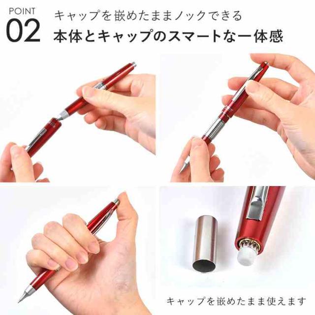 キャップを後ろに嵌めて、そのままノックできるスマートな一体感。キャップのつけ外し時のカチリという音も心地よい一品です。