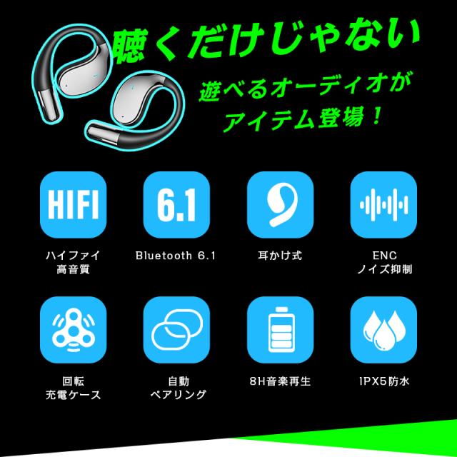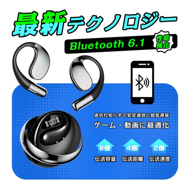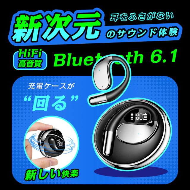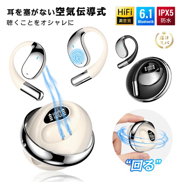 【クーポンで1980円】 空気伝導式 イヤホン 耳掛け型 OWS&TWS オープンイヤー 完全ワイヤレス Bluetooth6.1 開放型イヤホン 左右分離型 ヘッドセット 耳を塞がない ノンインナー型 イヤーフック型 耳かけ 革新デザイン ケースが回転する 【PL保険加入済み製品・安心】