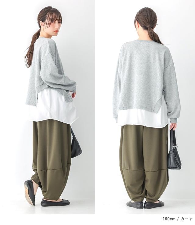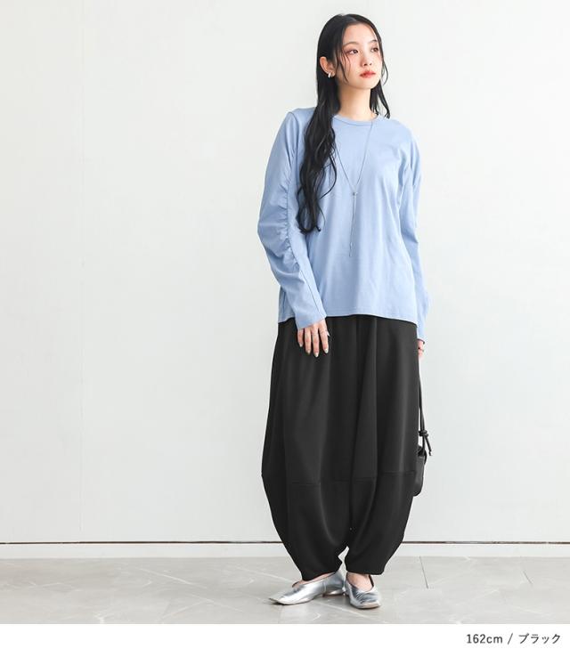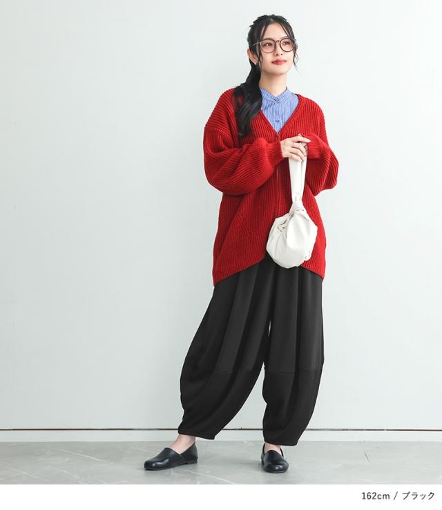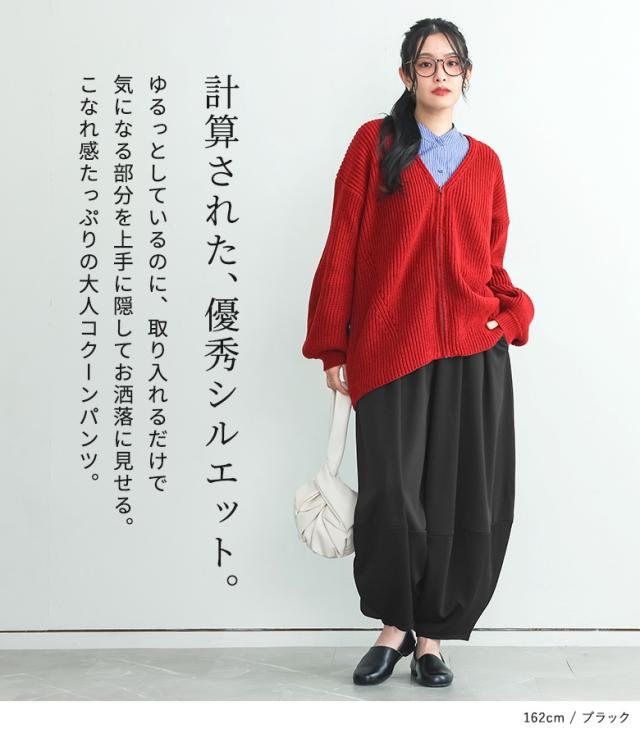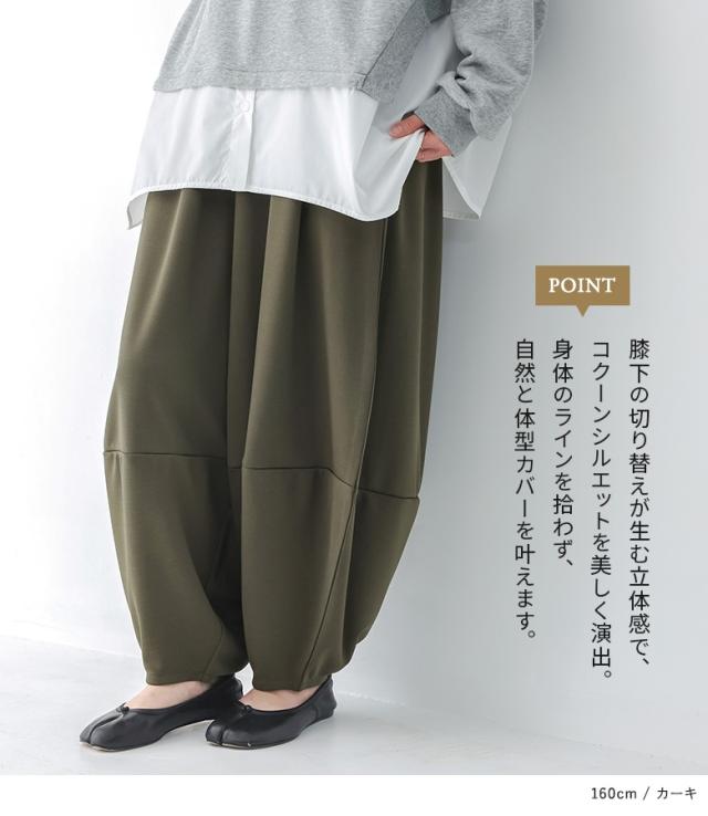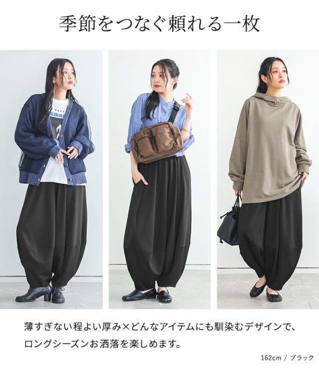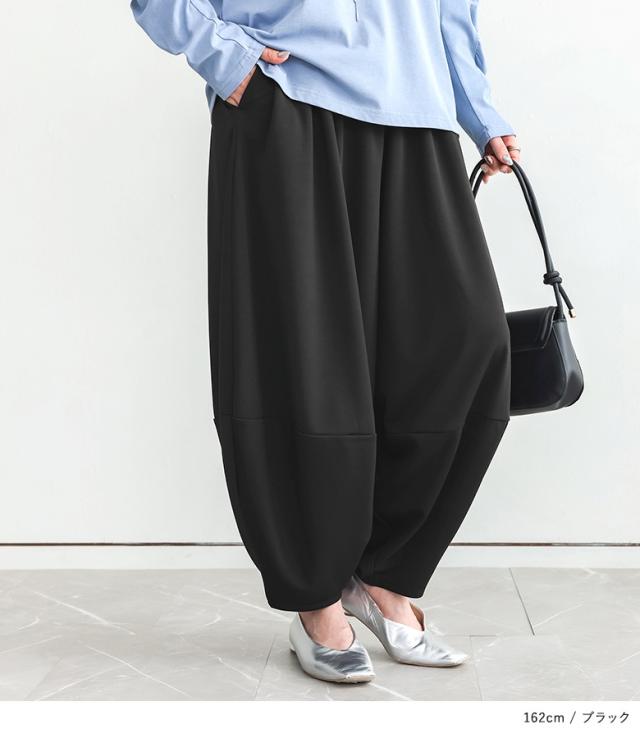 <冬新作>『ポンチコクーンパンツ』【メール便不可】【20】[コクーンパンツ ロング レディース ボトムス ワイドパンツ コクーンシルエット ウエストゴム ポンチ素材 伸縮性 体型カバー 春 秋 冬]