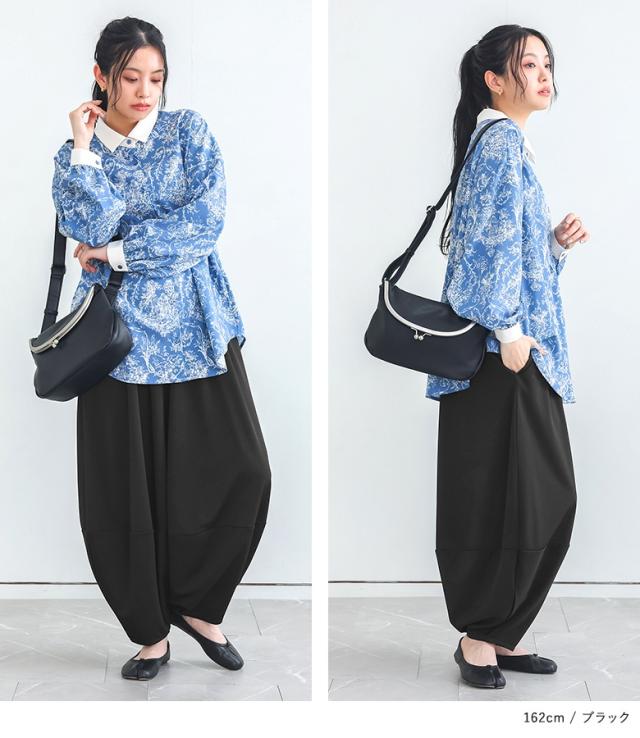 | staff:A/156.5cm B104 W82 H103 【普段着用】 Tops: L/LL Bottoms: L/LL | 【フリーサイズ】 着丈(ウエスト穿き):くるぶしが隠れる位 ウエスト:ジャスト ヒップ:ややゆったり 太もも周り:ゆったり 全体:ゆったり ゆったりとしたシルエット、ウエストゴムで楽に着られました。 |