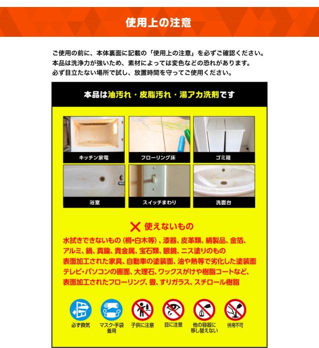 成分:界面活性剤(3%アルキルベタイン)、アルカリ剤、溶剤、金属封鎖剤、除菌剤、オレンジオイル