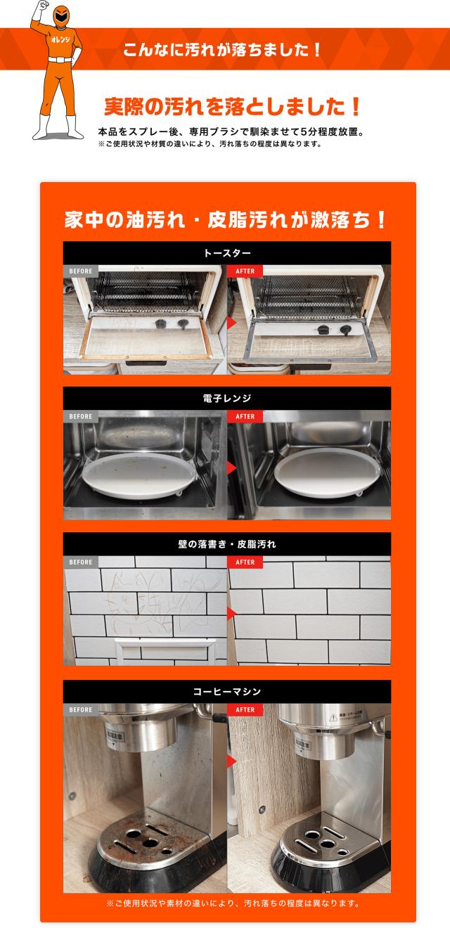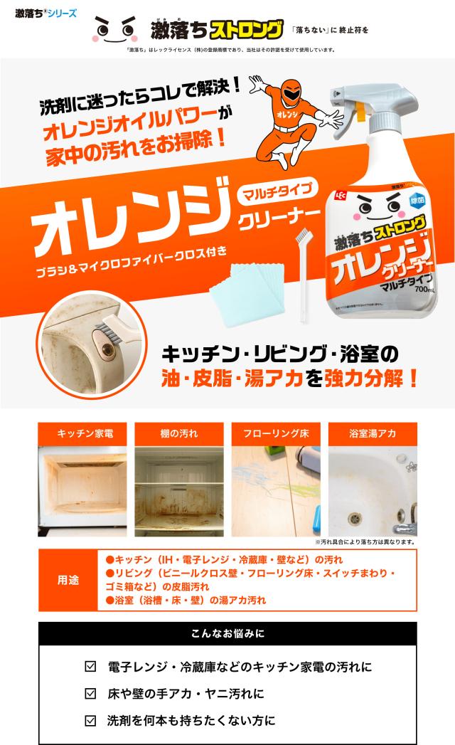 激落ちくん 除菌 マルチタイプ 油汚れ 皮脂汚れ 湯垢 キッチン リビング 浴室 電子レンジ 冷蔵庫 激落ちストロング オレンジ洗剤 700mL 道具セット レック lec