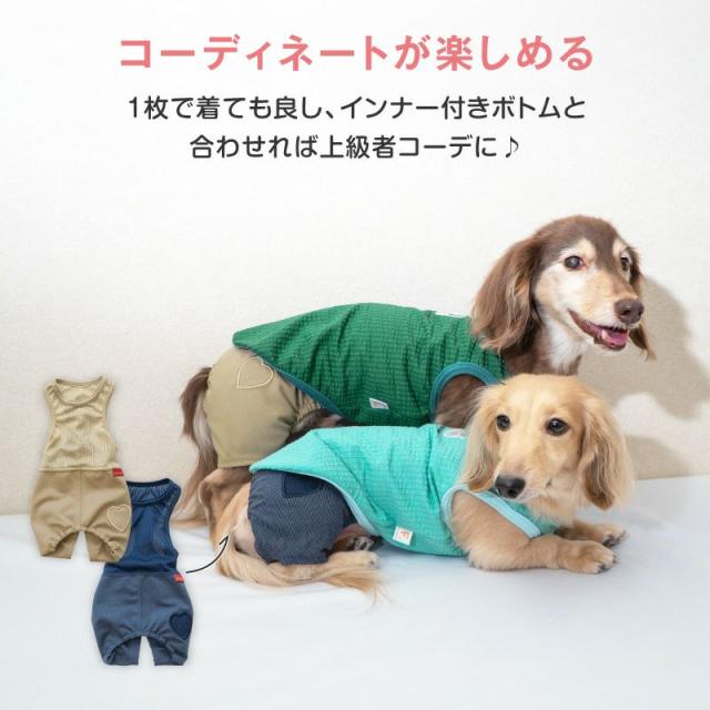 伸縮性があり、ワンちゃんの動きを妨げないストレスフリーな着心地です。