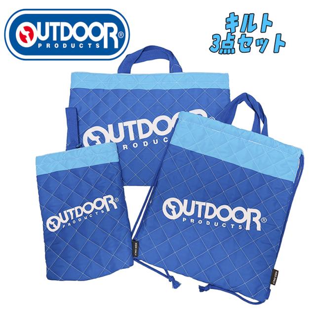 送料無料 アウトドア キルトバッグ3点セット レッスンバッグ/ナップサック/シューズバッグ OD1225BL-0/OD1226BL-9/OD1227BL-8