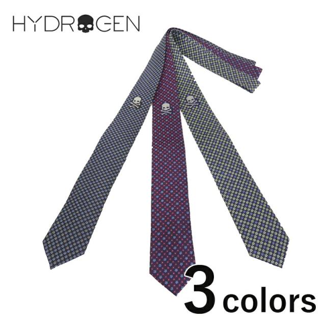 HYDROGEN ハイドロゲン ネクタイ イタリア製 2L 35223 ドット 花柄 総柄 ブラック ネイビー レッド グリーン メンズ レディース ナロータイ シルク ブランド スカル ドクロ カジュアル 誕生日 結婚式 2次会 パーティー プレゼント ギフト