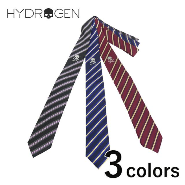 HYDROGEN ハイドロゲン ネクタイ イタリア製 2R 35243 ストライプ 総柄 ブラック ネイビー レッド メンズ レディース ナロータイ シルク ブランド スカル ドクロ カジュアル 誕生日 結婚式 2次会 パーティー プレゼント ギフト
