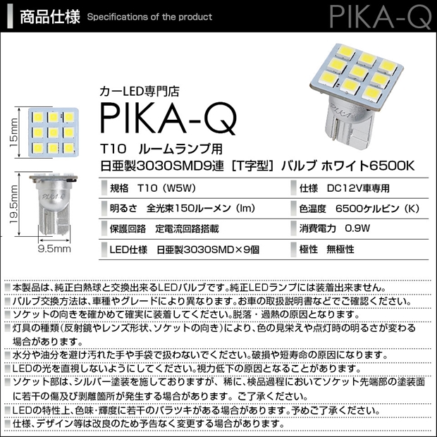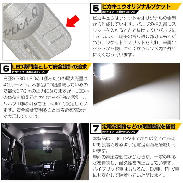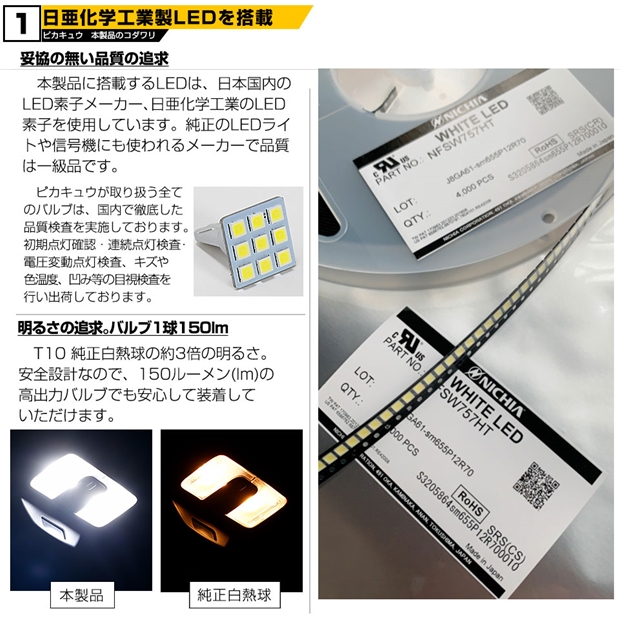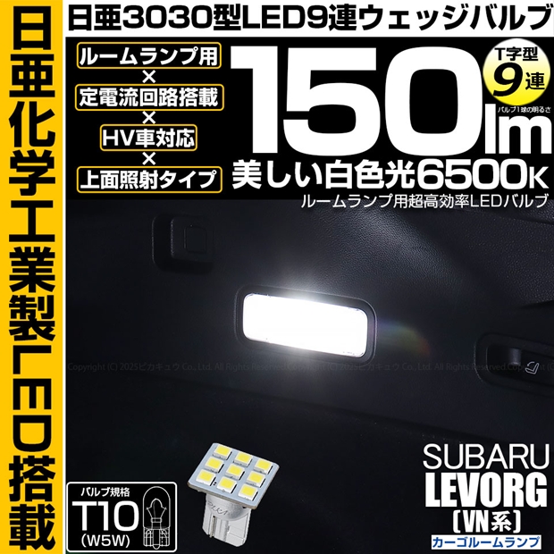 ピカキュウ,LED専門店,LEDバルブ,LED,SMD,T10,W5W,日亜化学工業,日亜,3030,ルームランプ,カーテシ,バニティ,爆光,150lm,150ルーメン,ROOM,スバル,SUBARU,レヴォーグ,LEVORG,VN5,VNH