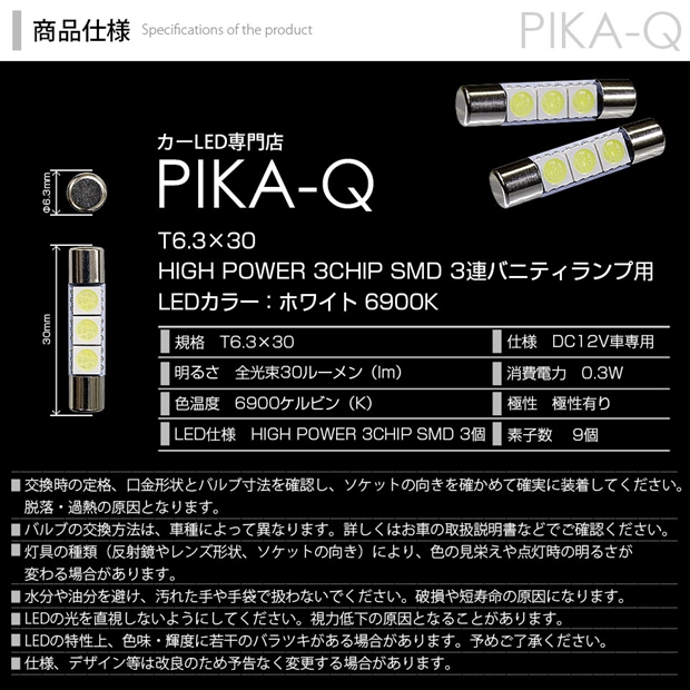 ピカキュウ,LEDバルブ専門店,T6.3×30,SMD,5050,ホワイト,全光束30ルーメン,ルームランプ,スバル,SUBARU,レヴォーグ,LEVORG,VN5,VNH
