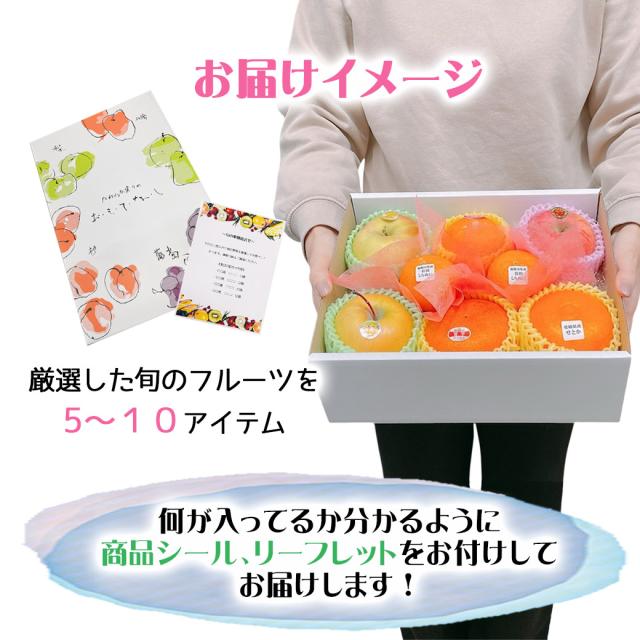 内容:季節に応じて、厳選した旬のフルーツを5〜10点程度お詰めいたします。