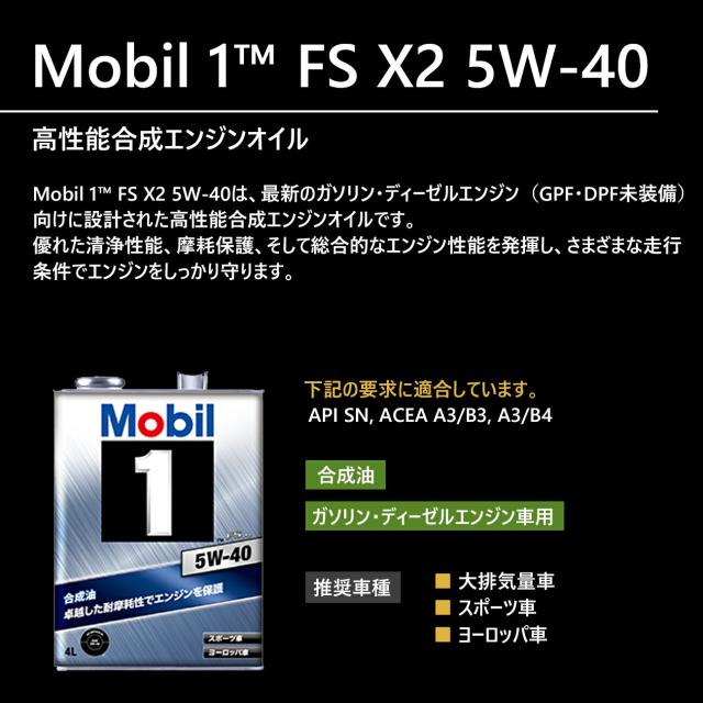 Mobil 1 シリーズ FS X2 5W-40 エンジンオイル 4L モービル 大排気量車 スポーツ車 ヨーロッパ車