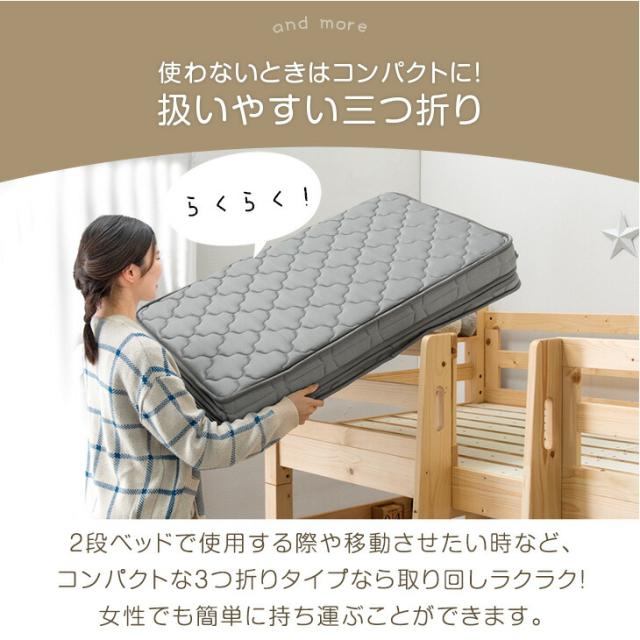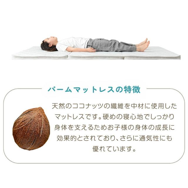 天然 パームマット 三つ折り パームマットレス 3つ折り 折りたたみ パーム マットレス 2段ベッド システムベッド用 ロフトベッド用 子供 マット 子ども 折り畳み ホワイト 白 グレー【商品番号:10002930】