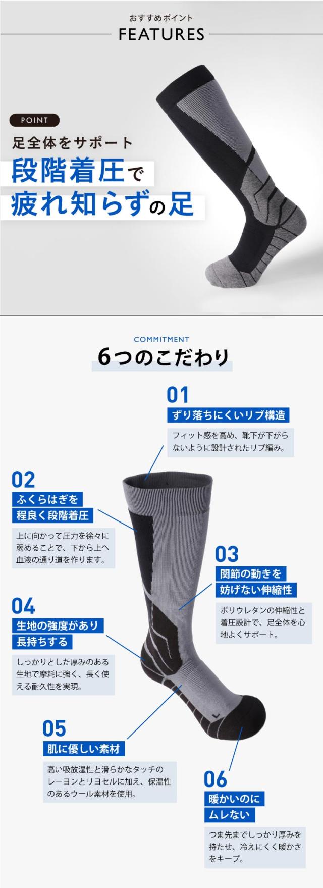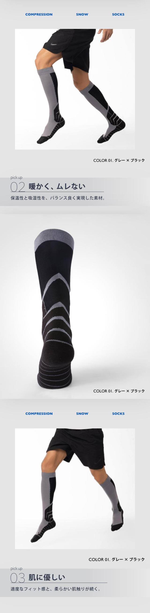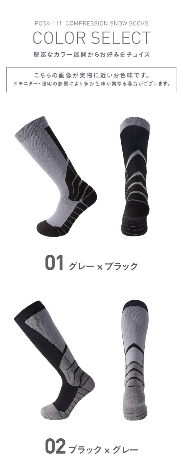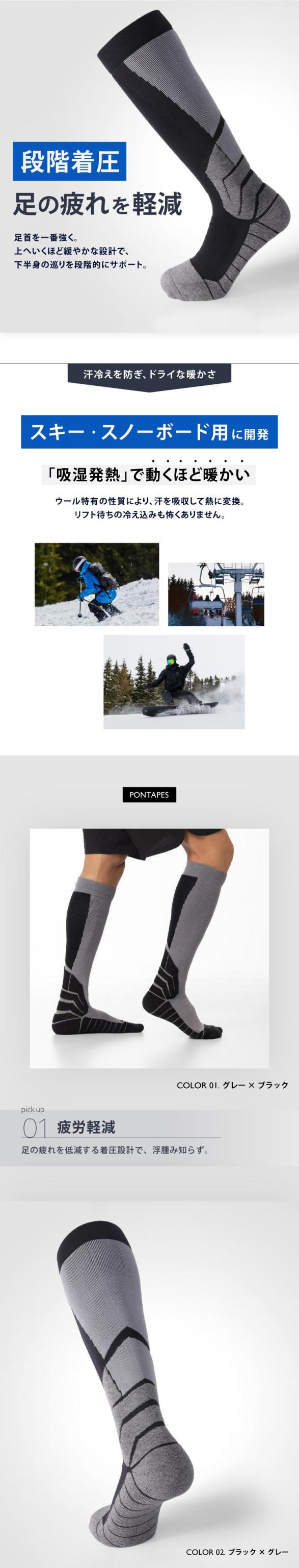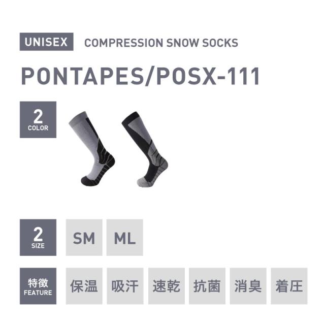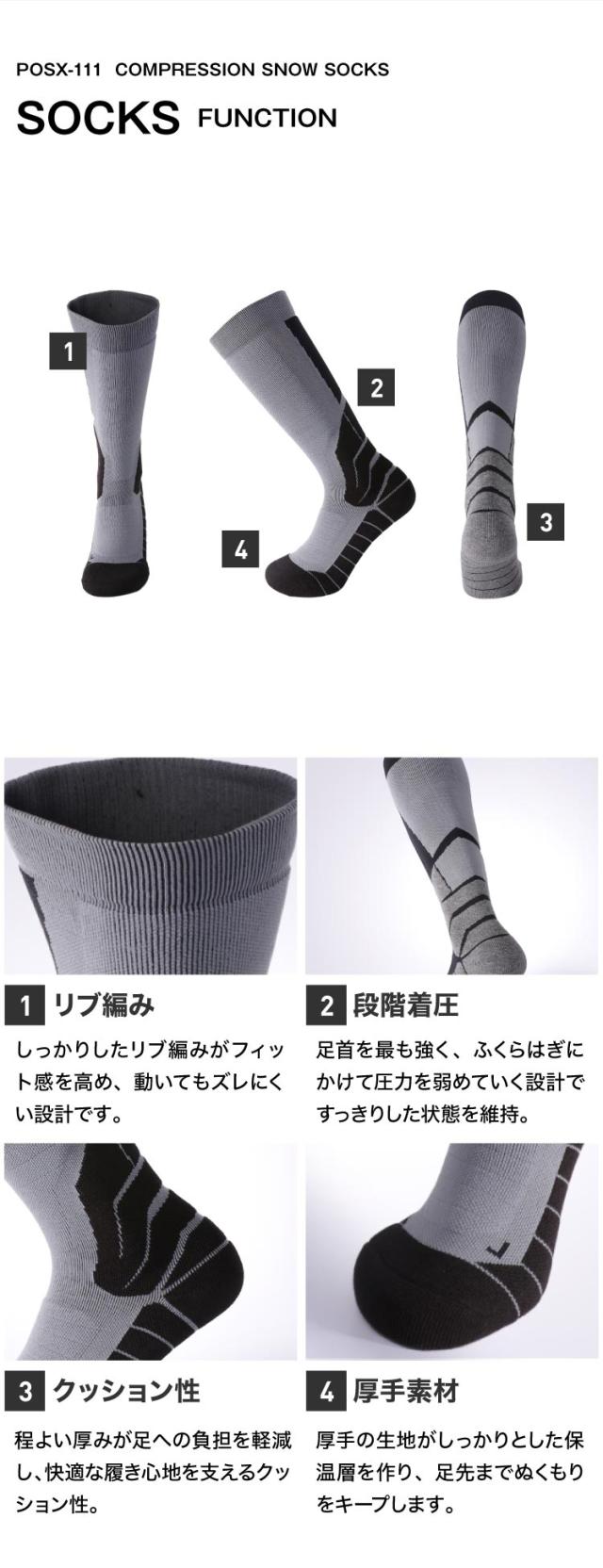 スノーソックス 着圧ソックス メンズ レディース スノーボード スノボ スキー ウインタースポーツ スノー 疲労軽減 吸湿発熱 ムレない 段階着圧 消臭 PONTAPES/ポンタぺス POSX-111
