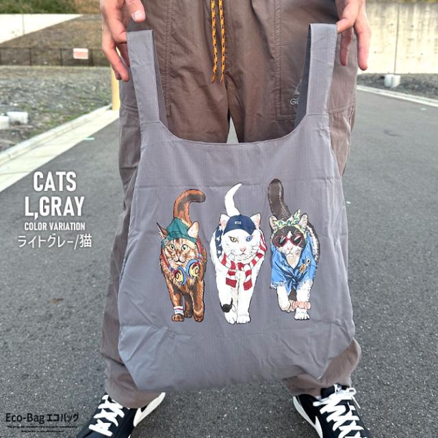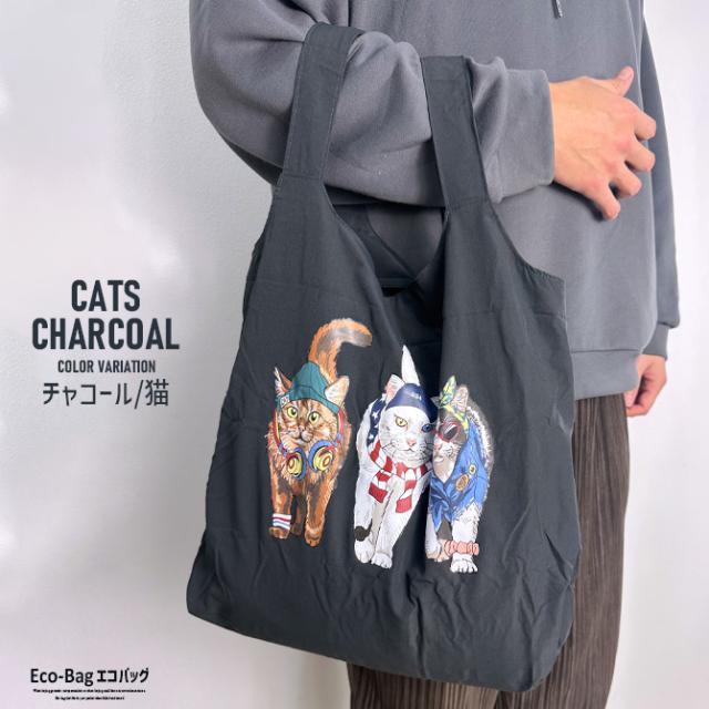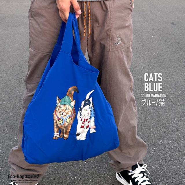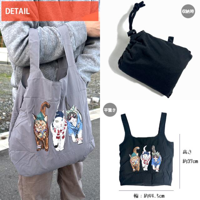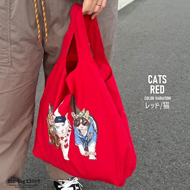 エコバッグ ポリリップ 猫プリント キャッツ 猫バッグ ポケッタブル ショッパーバッグ
