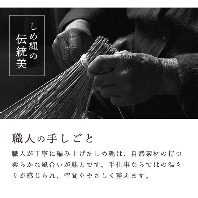 ひとつひとつ、職人の手で編まれたしめ縄は、手仕事ならではの温かみと繊細な美しさを備えています。
