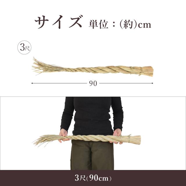 しめ縄 しめなわ 注連縄 3尺 90cm 藁製 大根型 だいこん型 神棚用 お正月 神具 お飾り (代引き決済不可商品)