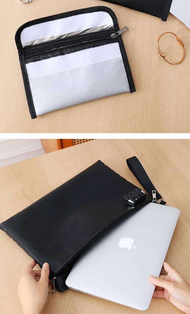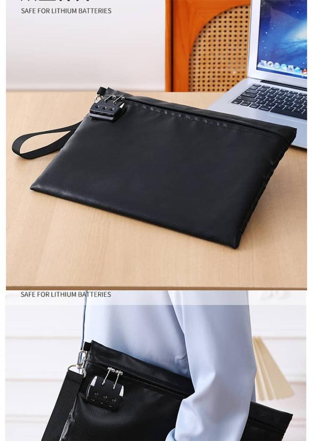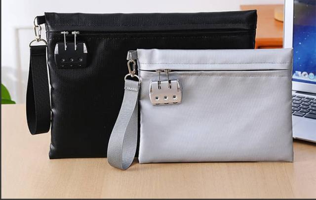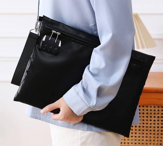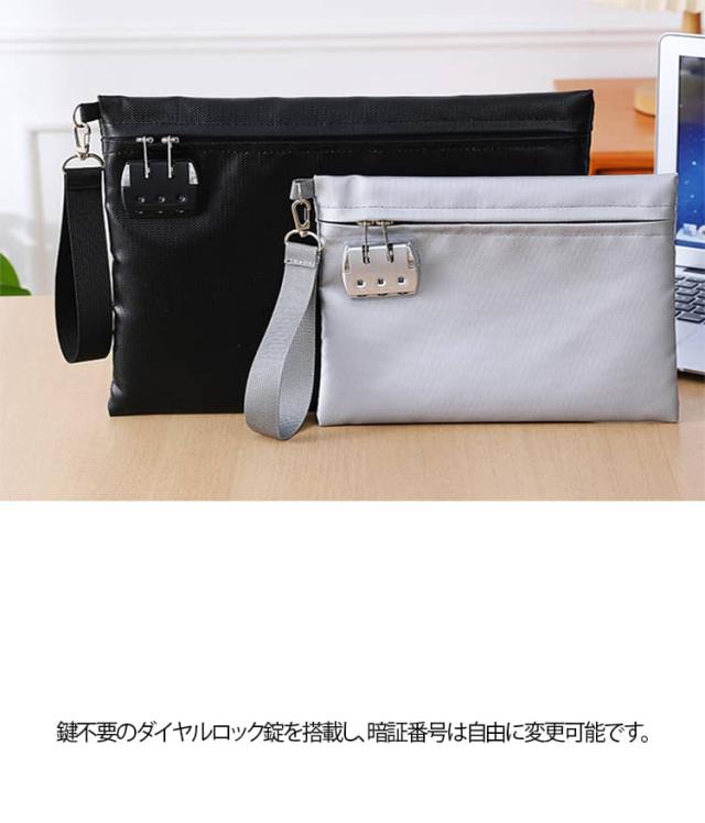 貴重品ボックス 鍵付き袋 お札入れ 鍵付きポーチ 耐火バッグ 耐火金庫 集金袋 貴重品入れ セキュリティポーチ 防火袋 耐火防水バッグ 通帳ケース 耐火収納ケース 隠し金庫 書類ケース 防火金庫 防火袋 セーフティーバッグ ブラック