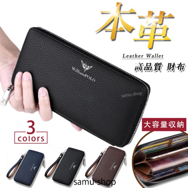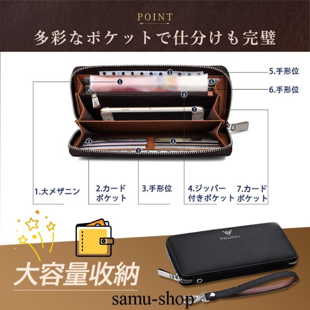 WilliamPOLO 長財布 メンズ 財布 本革 小銭入れ コインスルー ラウンドファスナー カード入れ 大容量 ラウンドファスナー 上質牛革 多機能財布 男性 30代 40代 50代 贈り物 誕生日 クリスマス プレゼント ギフト 父の日