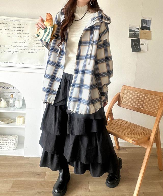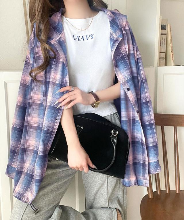 ゆったりとしたサイズ感が魅力のチェックシャツパーカーは、