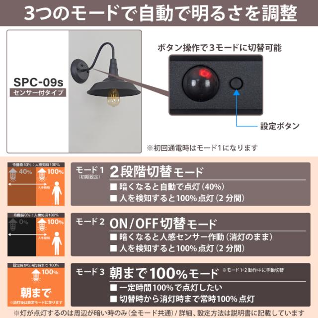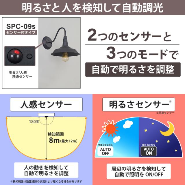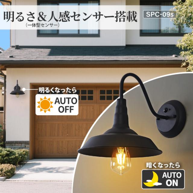 【人感センサー】玄関灯 ポーチライト 防雨 外灯 玄関 LED 照明 門柱灯 庭用 ブラケットライト 明るさセンサー同時搭載 おしゃれ PSEマーク取得 SPC-09S