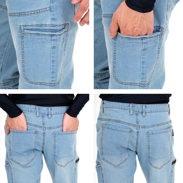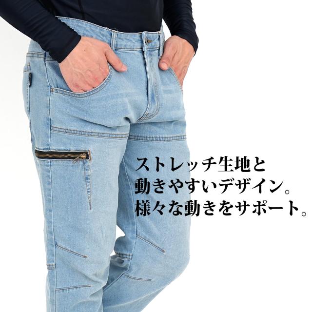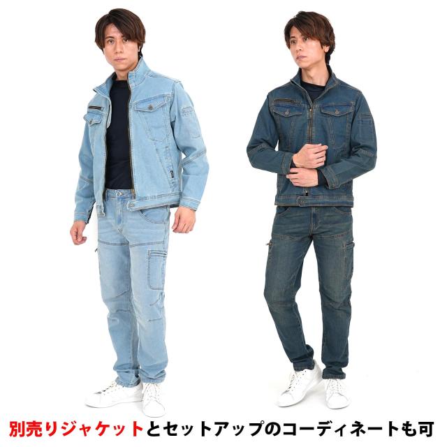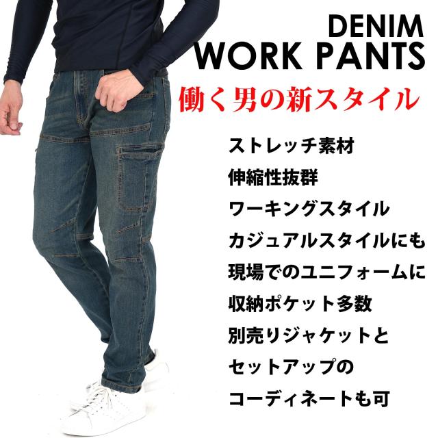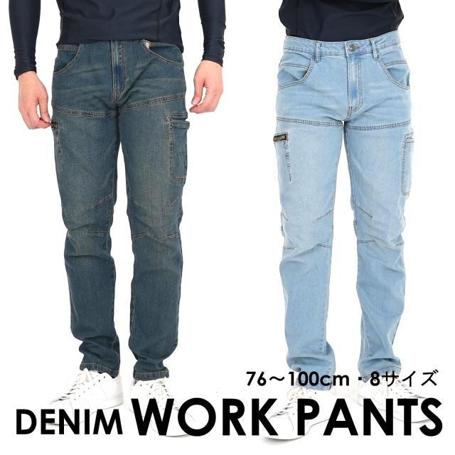 カーゴパンツ デニムパンツ 作業ズボン 作業着 ポケット 裾上げ加工 大きいサイズ ウエスト100cmまで ストレッチ 軽快な動き 激しい動きに対応 セットアップ可能