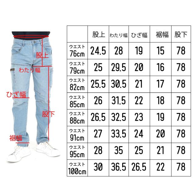 股上 約25.5cm わたり幅 約30.5cm ひざ幅 約21cm 裾幅 約17cm 股下 約78cm