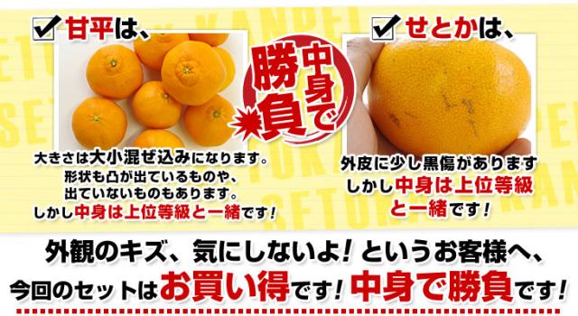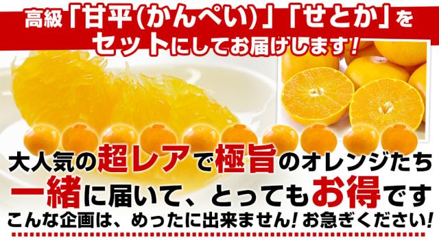 これは希少!超レア品種の甘平(かんぺい)とせとかのセットです。 いずれも愛媛県が誇る極上の柑橘!うまいオレンジの条件を兼備えた人気の品種を詰め合わせます!