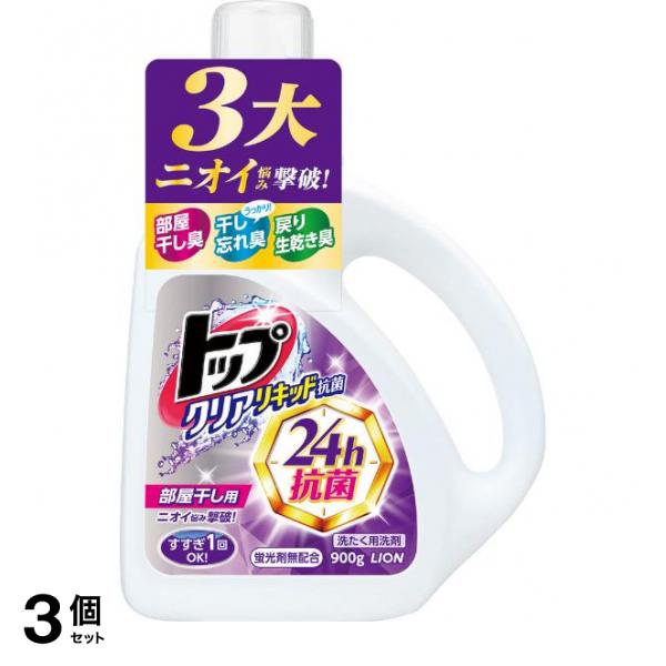 3個セット クーポン有 トップ クリアリキッド抗菌 部屋干し 液体 洗濯洗剤 900g (本体)