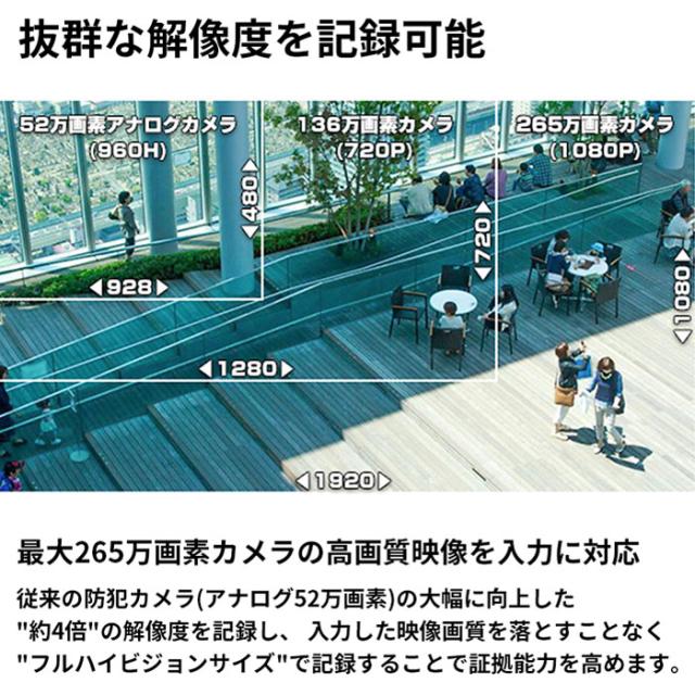 最大4K800万画素(3840×2160)のカメラ入力に対応し超高画質録画が可能。