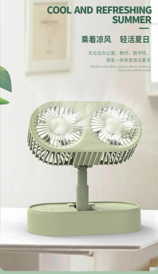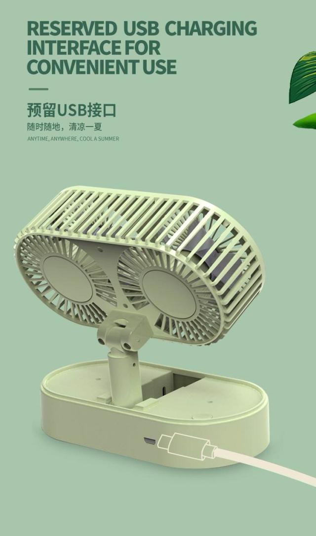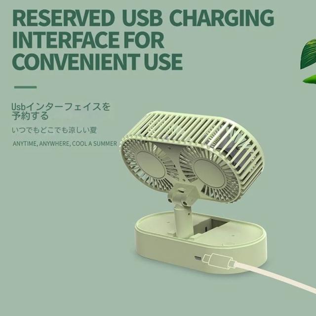 新型ミニ充電デスクトップファン伸縮折り畳み式携帯型学生寮デスクトップ二頭小ファン