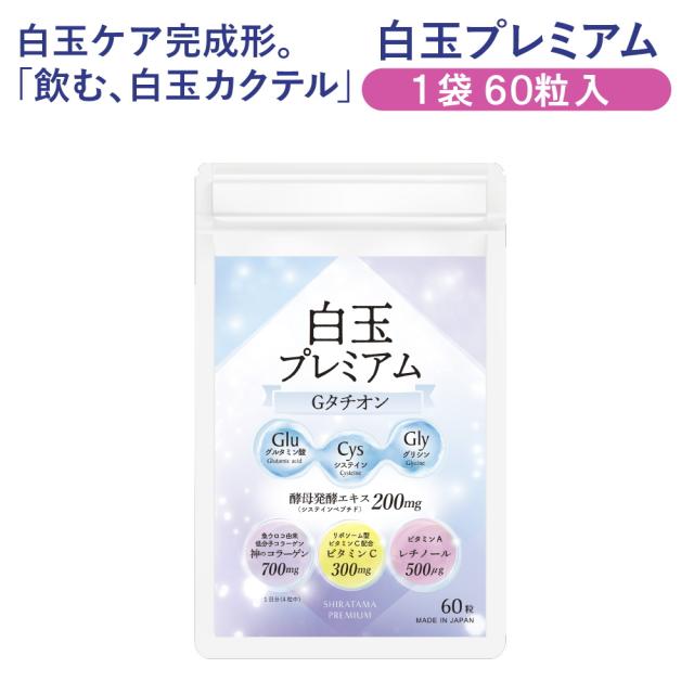 白玉プレミアムGタチオン 60粒入 白玉サプリ 白玉 サプリ 白玉サプリメント システインペプチド 酵母発酵エキス ビタミンC 低分子コラーゲン 白玉カクテル