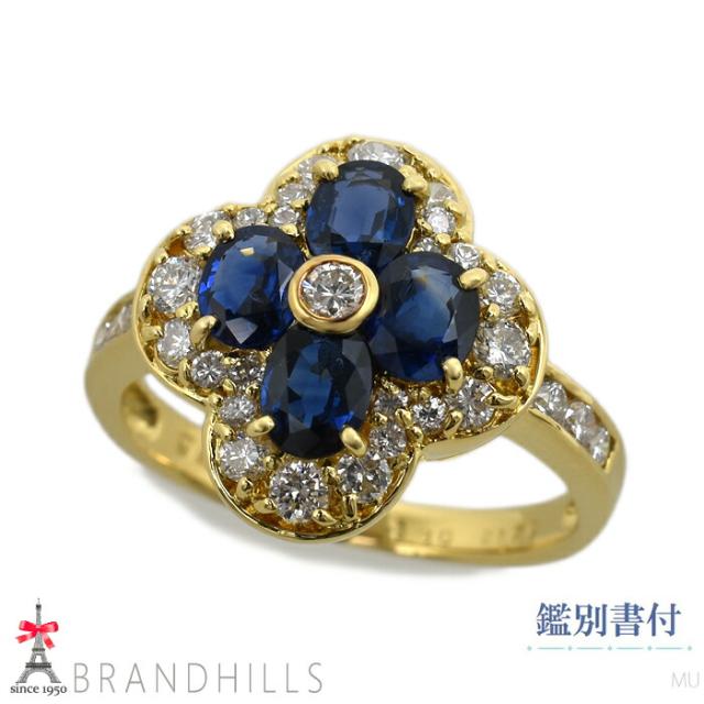 サファイア 1.79ct ダイヤモンド 0.80ct リング 鑑別書付 K18金 750YG フラワーモチーフ 指輪 #15.5 5.9g 極美品 【中古】