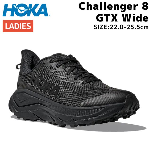 ホカ HOKA Challenger 8 GTX Wide チャレンジャー 8 GTX ワイド レディース ブラック トレラン トレイルランニングシューズ ロードランニング ランシュー シューズ 雨 雪 泥 水たまり 1180810-BBNB