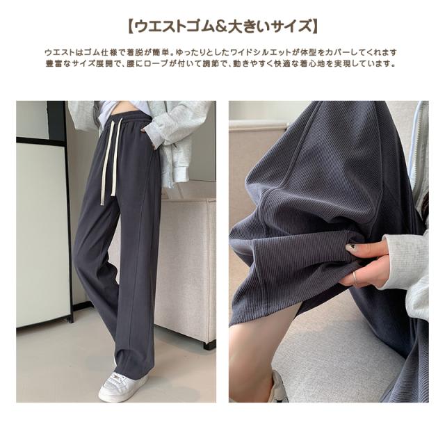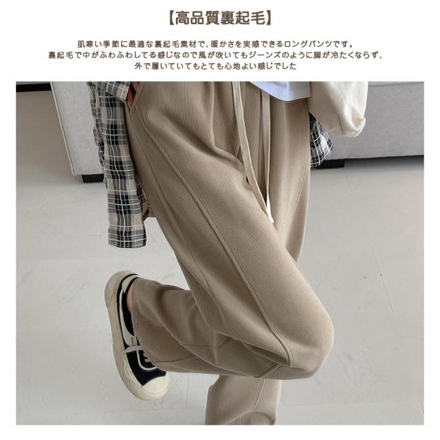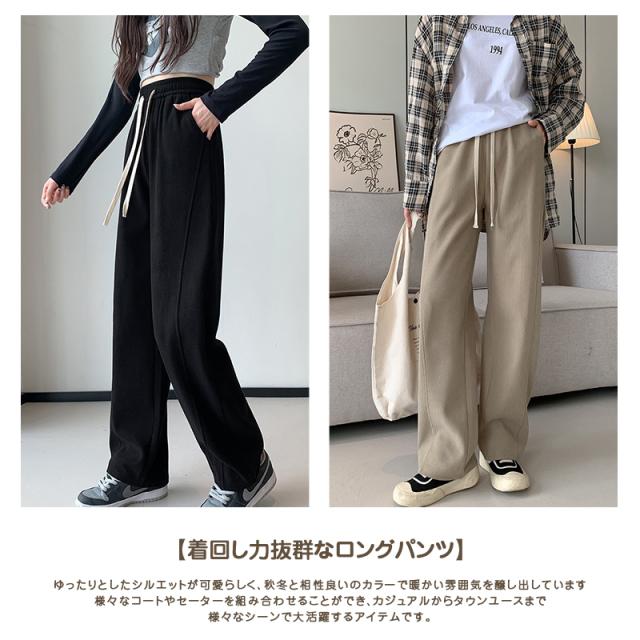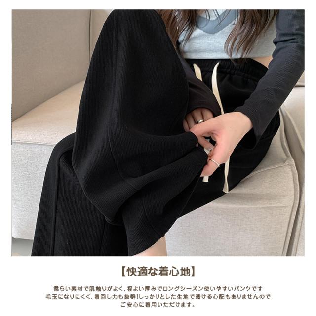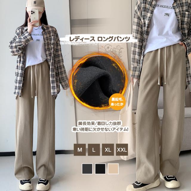 裏起毛ワイドパンツ レディース ロングパンツ 裏起毛 リブ ウエストゴム ガウチョパンツ カジュアル ワイドパンツ 大きいサイズ 脚長効果 着回し力 着痩せ 暖かい 秋 冬